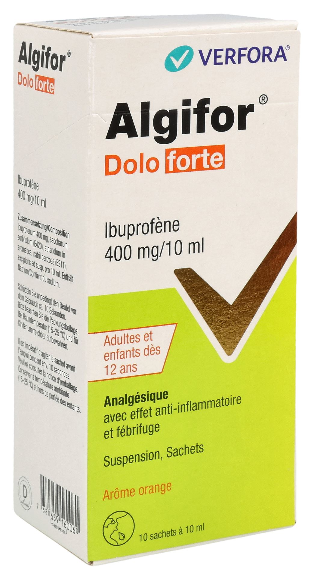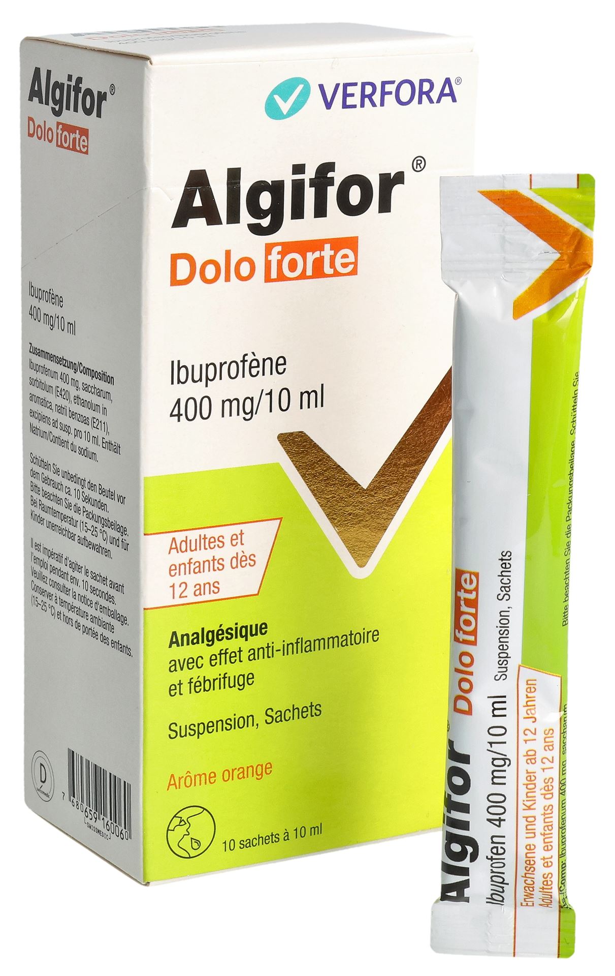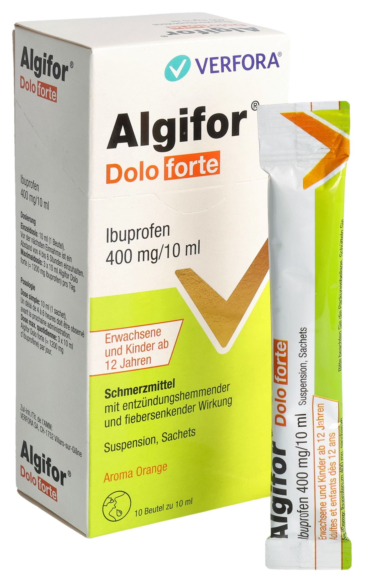 Algifor Dolo forte Suspension enthält den Wirkstoff Ibuprofen. Ibuprofen wirkt schmerzlindernd, entzündungshemmend und fiebersenkend. Algifor Dolo forte ist ein Präparat für die Anwendung bei Jugendlichen ab 12 Jahren und Erwachsenen. Wenn nicht anders vom Arzt verordnet, darf Algifor Dolo forte Suspension nur zur Kurzzeitbehandlung verabreicht werden (d.h. maximal 3 aufeinander folgende Tage) für: